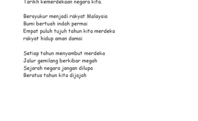 Pantun Patriotik 4 Kerat - 1. 4 semai mari bunga melati, kembang disunting putih warnanya; Buka lampu nampak terang, walaupun hari masih siang, beranikan diri dalam perang, jangan biar dijajah orang. Nora syikin , "pantun tema semangat patriotik . Pantun merdeka dan pantun hari kebangsaan sering diungkapkan sebagai simbol perpaduan dan patriotisme rakyat malaysia. Tunku abdul rahman bapa kemerdekaan,. 61k views 4 years ago .